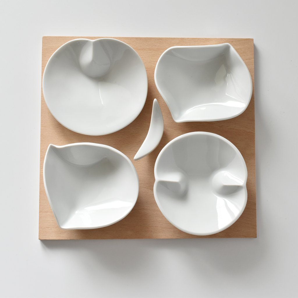 Porcelánové dekorativní originální misky vznikaly netradičně - z papírového modelu. Tento netradiční způsob zrodu porcelánového výrobku mi umožnil vytvořit mističky, na kterých jsou patrné křehké prvky papíru a zajímavé sklady a záhyby. Každá miska je originálním kouskem, určena pro potěšení z jídla...