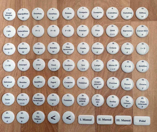 I have already produced porcelain discs with organ register markings for the organ workshop of Tomaž Močnik in Slovenia, which now adorn the luxurious "Kalvárský organ" in Bratislava in the Kalvária Bratislava parish.