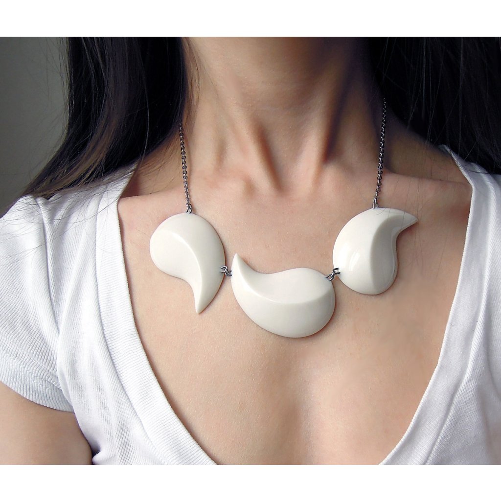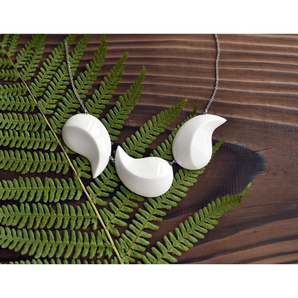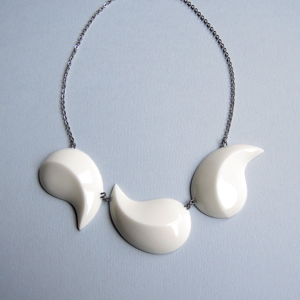 Náhrdelník z porcelánu a z chirurgické oceli. Výrazný svatební šperk nebo šperk na ples.