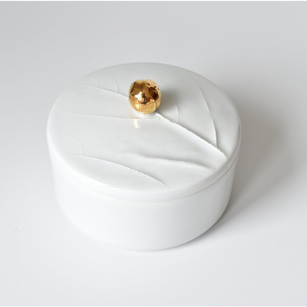 Porcelánová dóza se zlatou kuličkou a otiskem listu