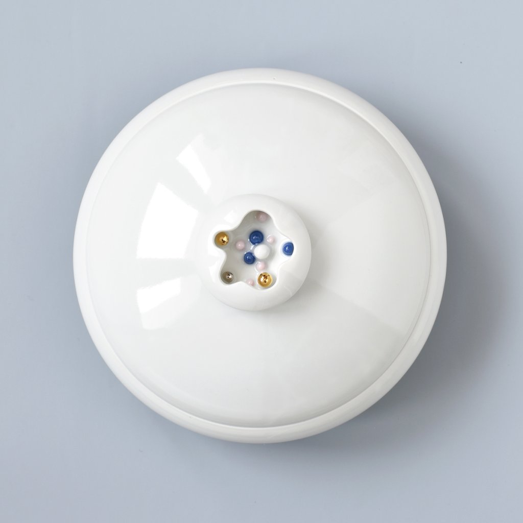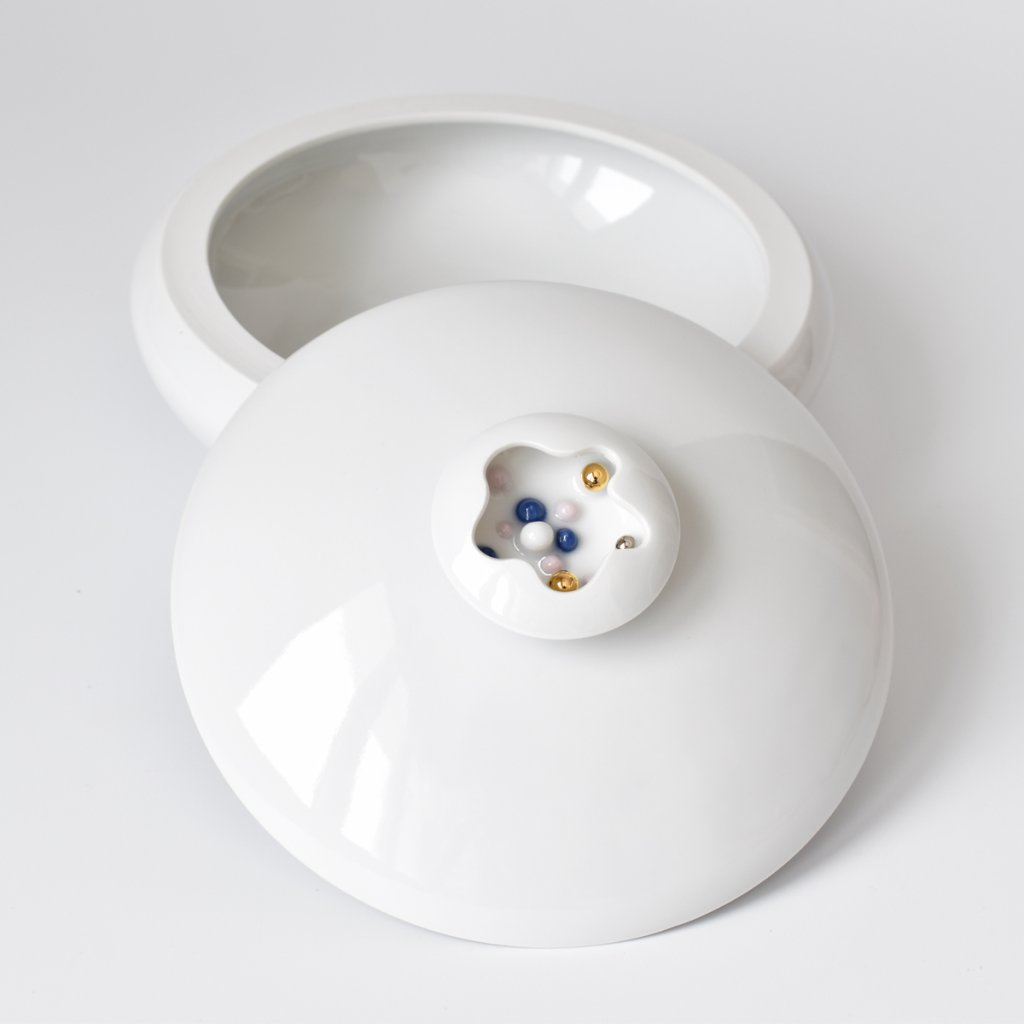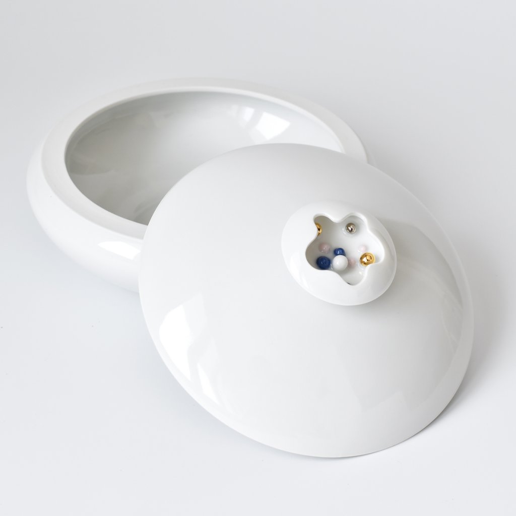 Porcelánová dekorativní i funkční dóza na malá tajemství. Rozzáří střed stolu. Funguje jako magnet, když půjdete kolem, přitáhne váš pohled.