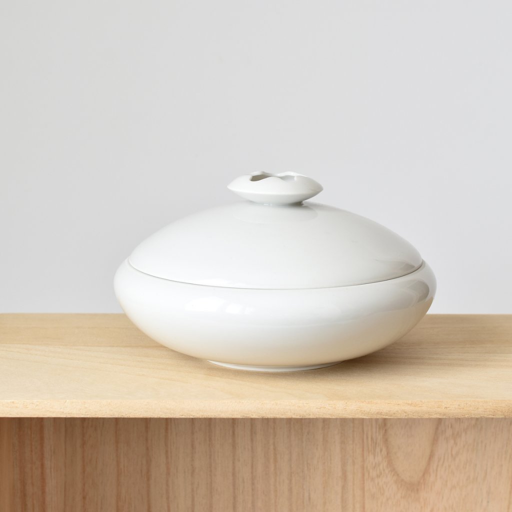 Dóza je vyrobená z čistě bílého karlovarského porcelánu, který je vypálený na 1400°C.