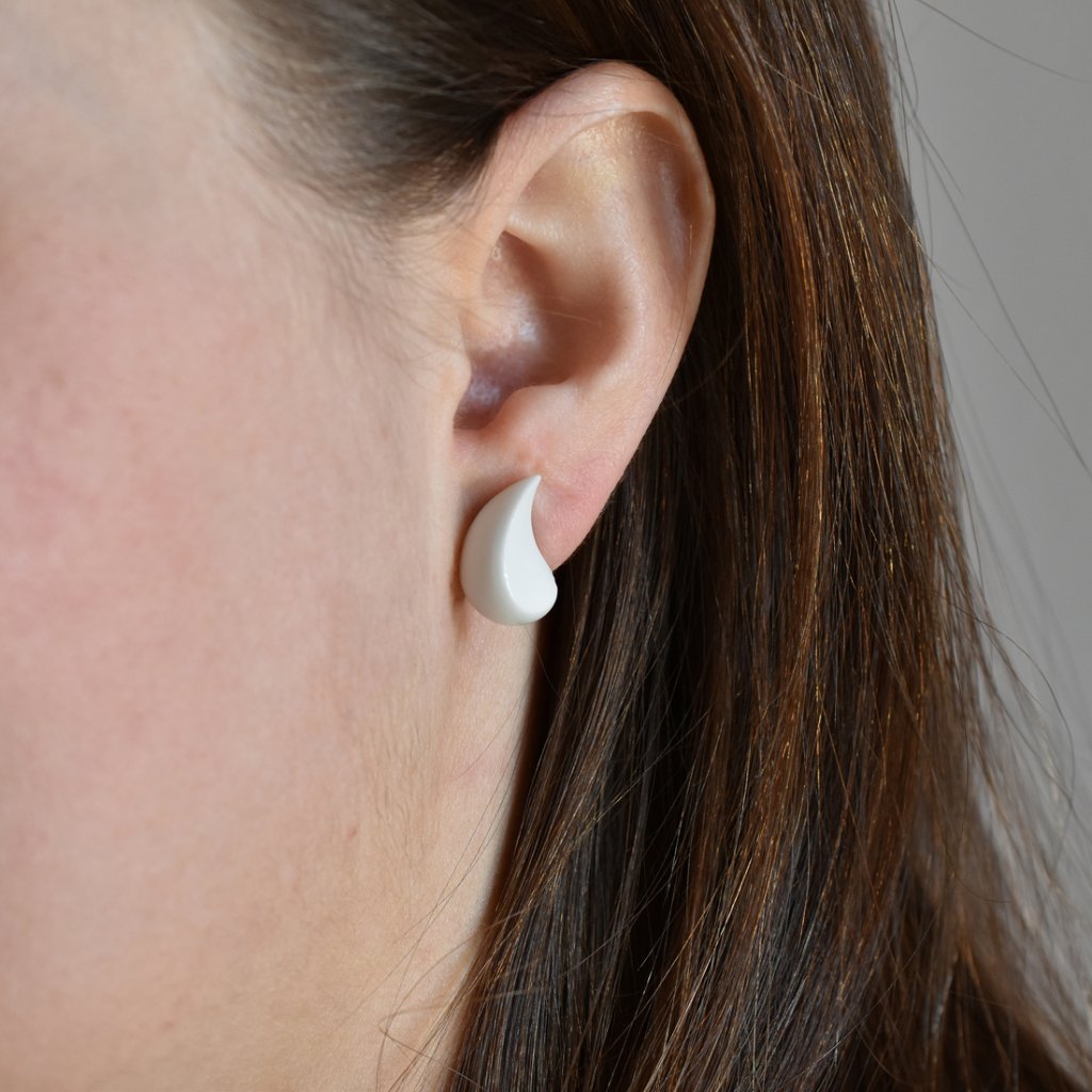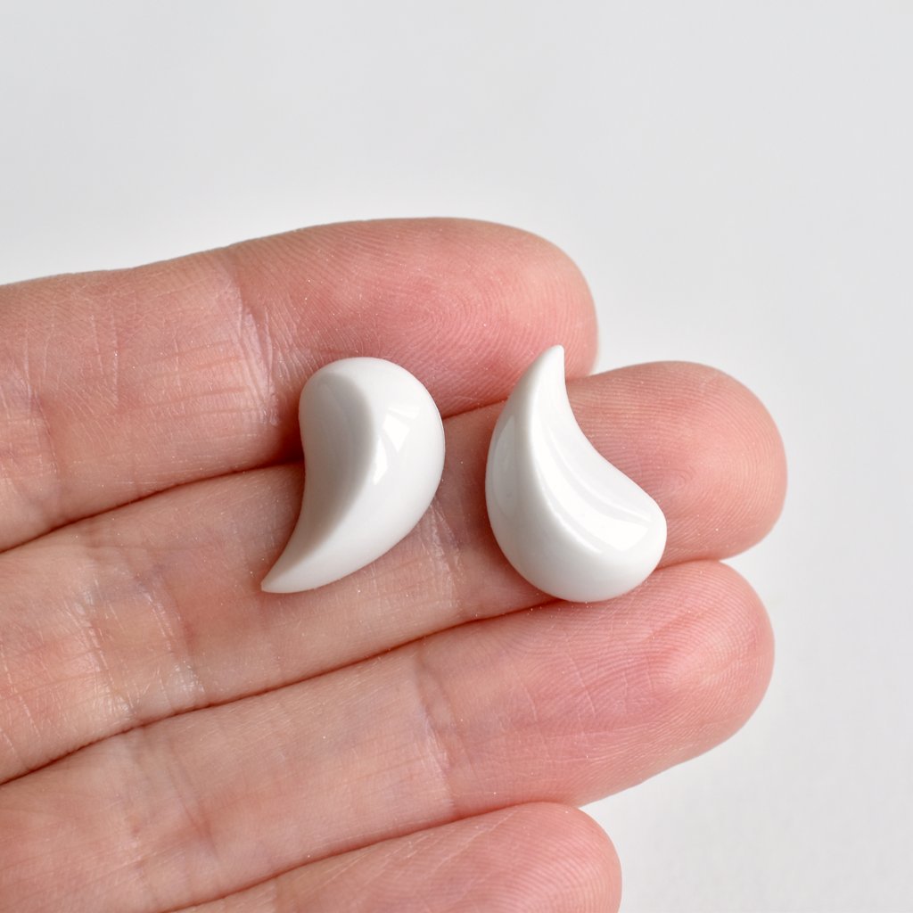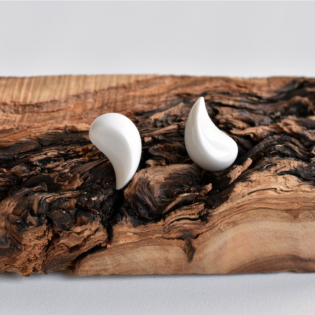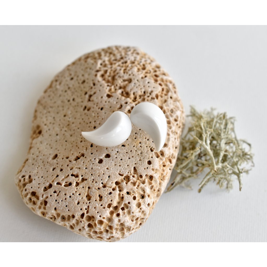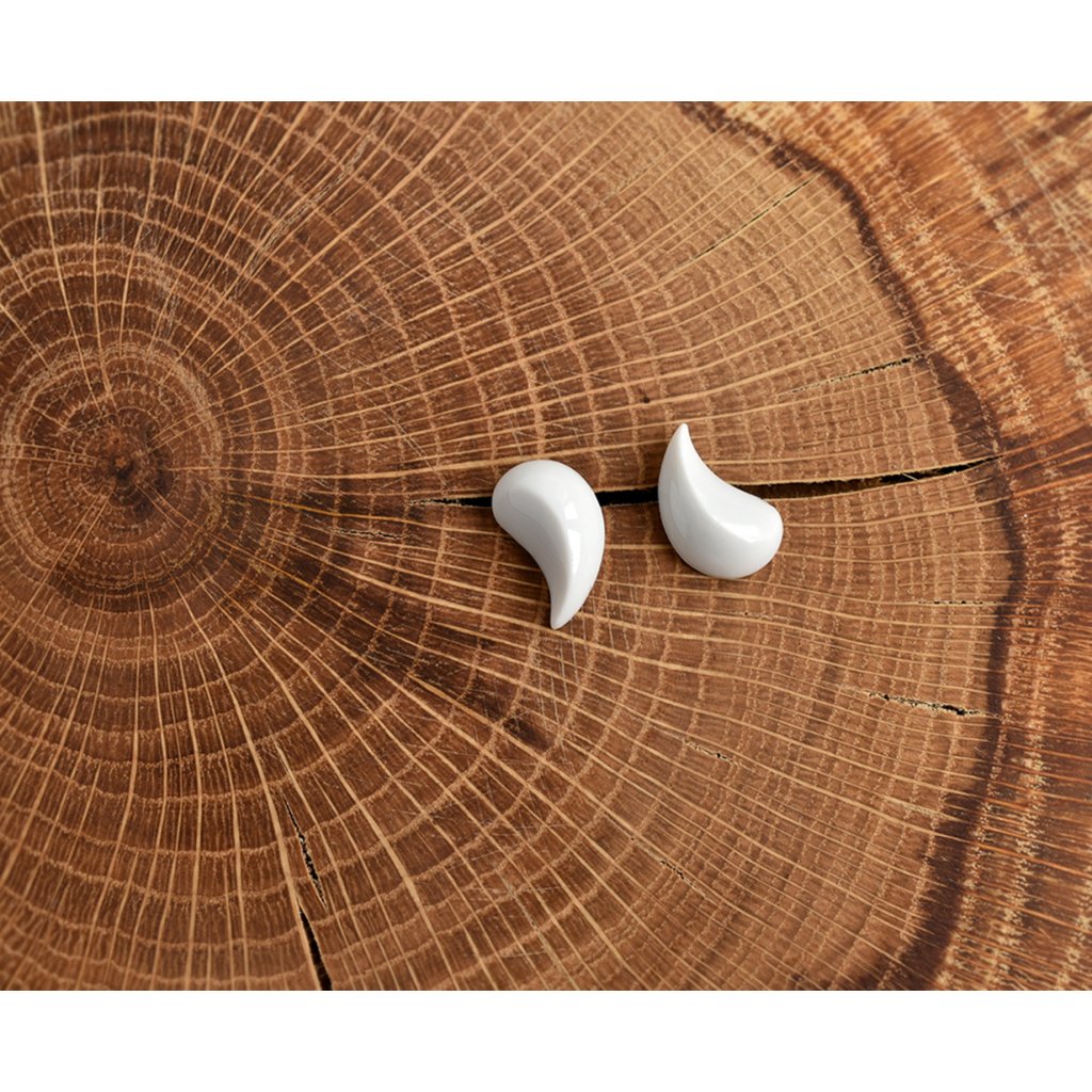 Půvabné, čistě bílé porcelánové náušnice minimalistického designu z nové jarní kolekce Lístky.