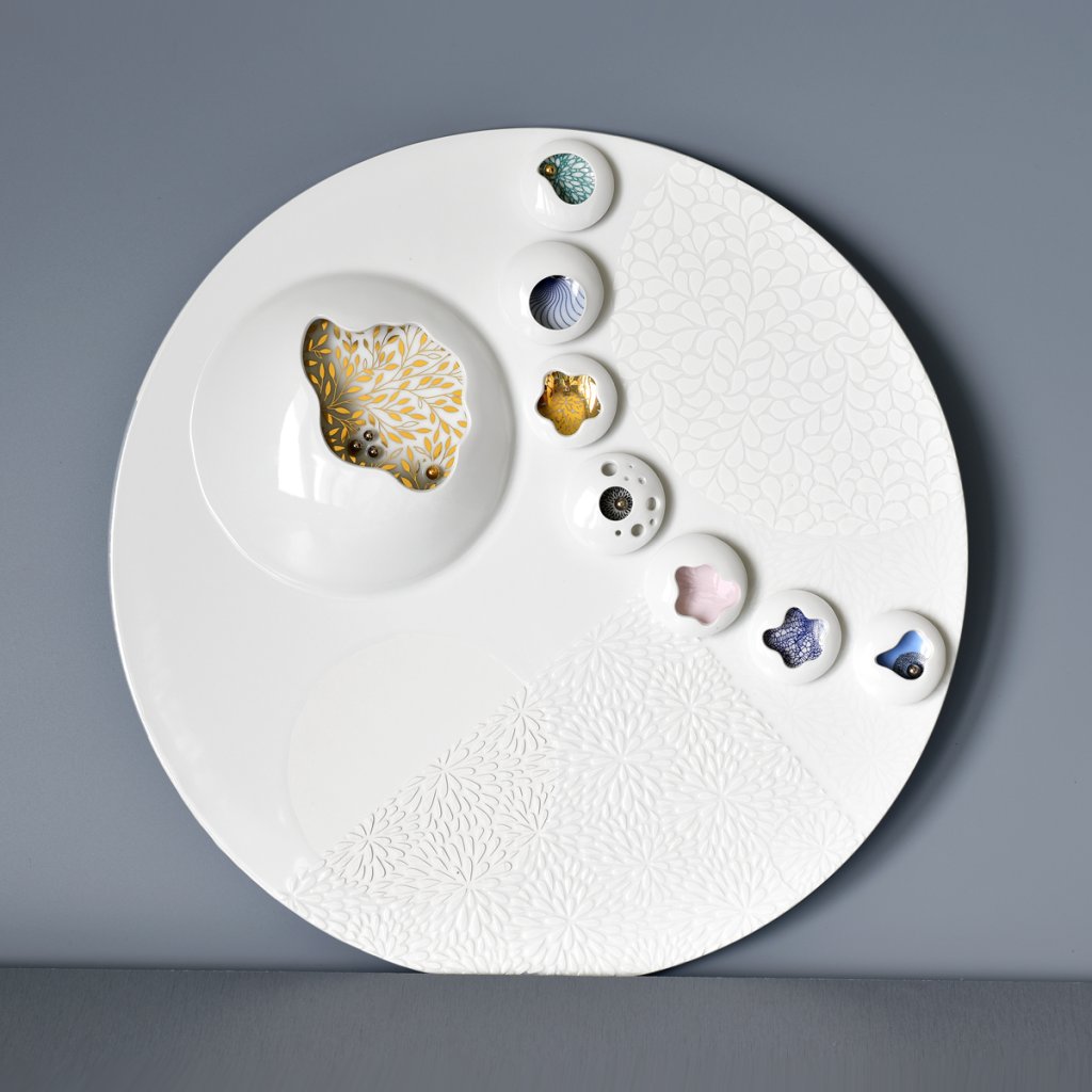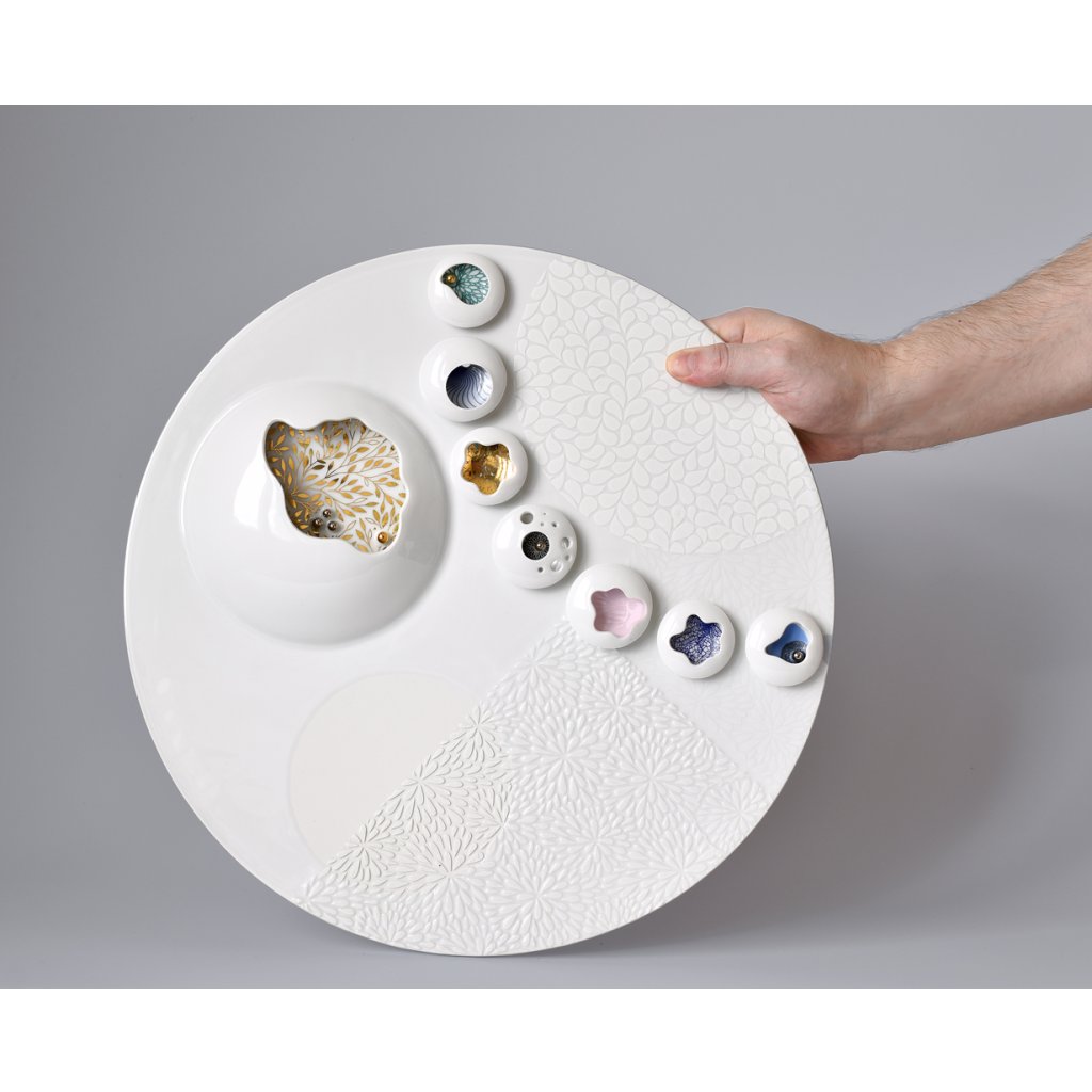 Tento ručně vyrobený kruhový porcelánový obraz či porcelánová plastika na zavěšení na zeď, krásně ozvláštní váš domov. Jemná struktura vytváří nejen vizuální, ale i hmatový zážitek.