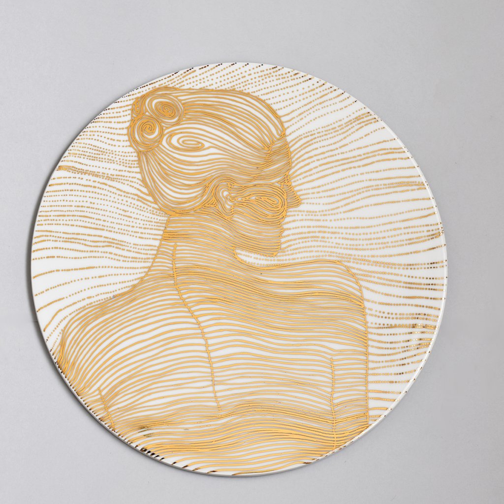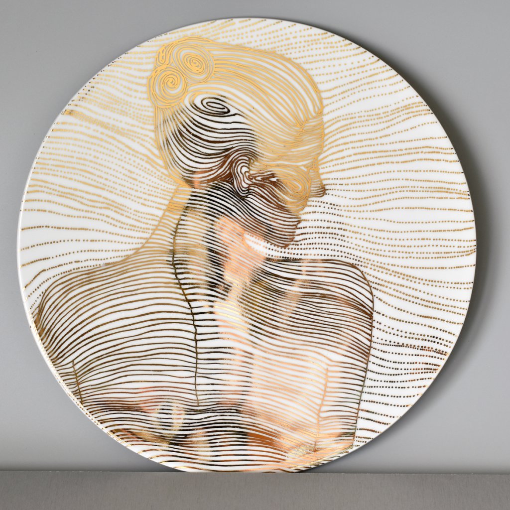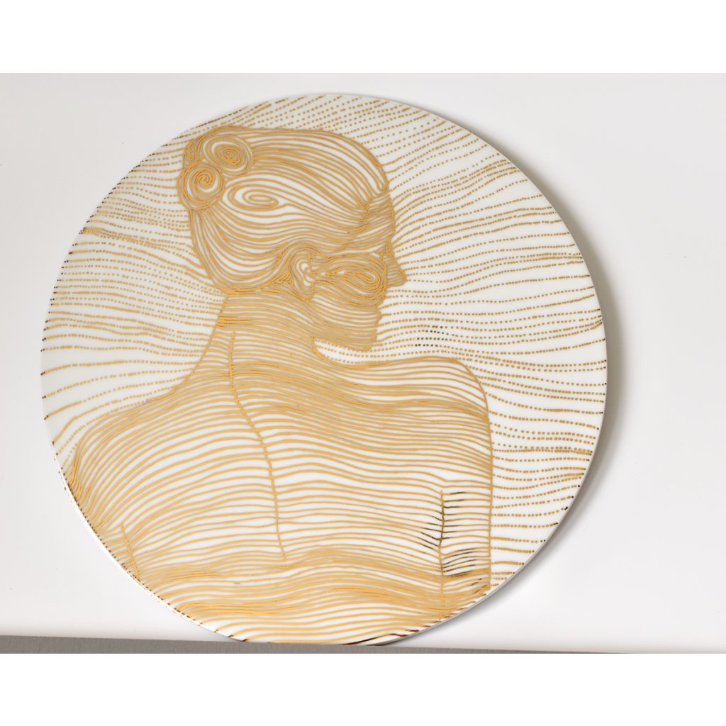 Je to jediný originál, malovaný pravým zlatem a vysoko pálený na 1400°C. Zlato je vypálené na 820°C.