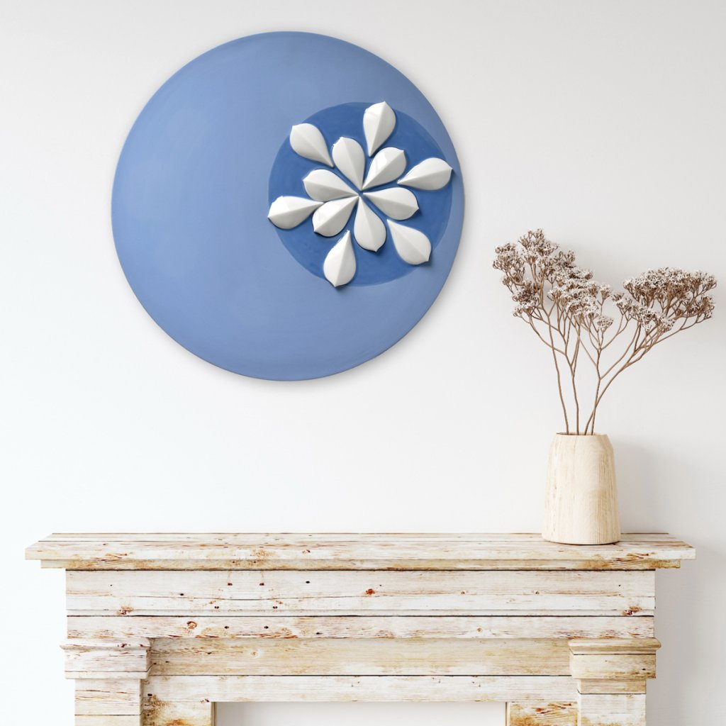 Tento originální ručně vyrobený kruhový porcelánový obraz - plastika, krásně prosvětlí a ozvláštní váš domov. Je vyrobený z modrého a bílého porcelánu.